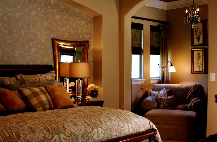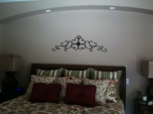 These faithful clients asked Adentro Designs to revamp their master bedroom. The real show-stopper in this room is the floral, metallic wallpaper that adorns the niche behind the bed. It adds a level of sophistication and richness to the room. The soft color palette and traditional decor make this a master suite a place anyone would want to end their day.